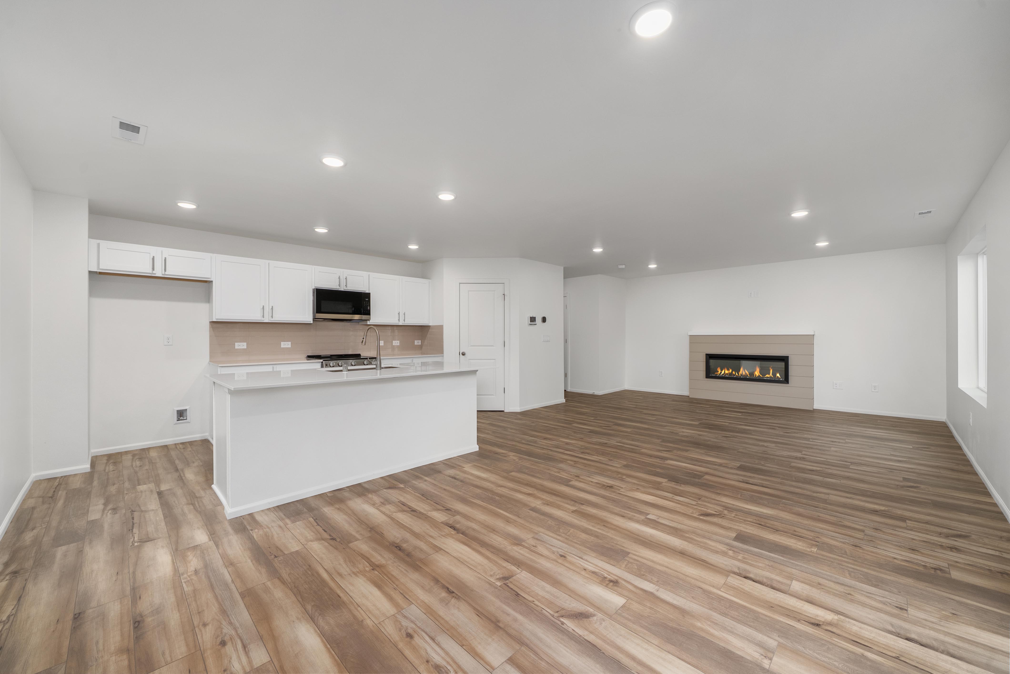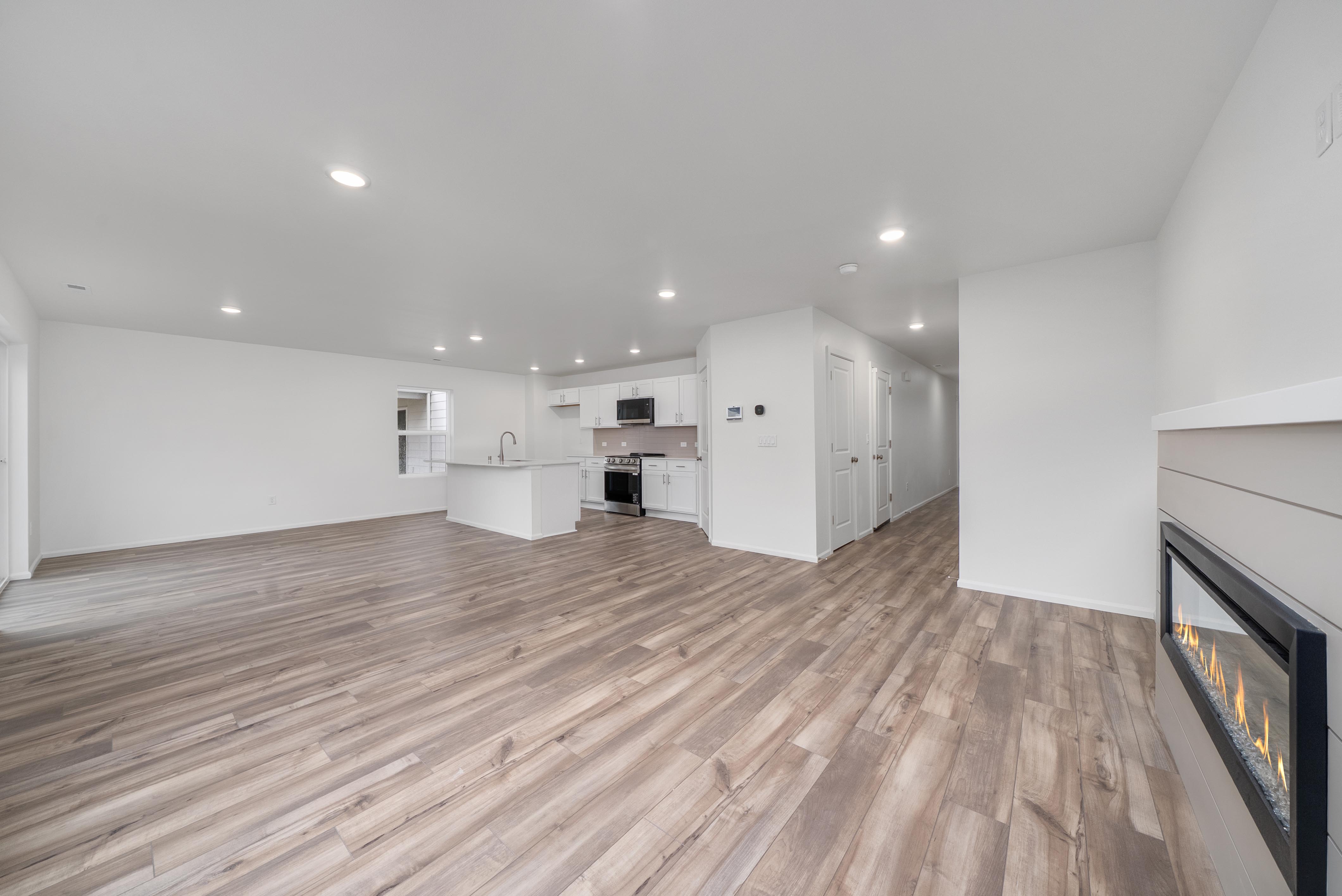 The Lina at Centralia Woods offers two floors of comfortable living space with a main-floor layout that’s perfect for entertaining. As you enter the home from a generous front porch, the long foyer leads to an expansive great room and a well-appointed kitchen—boasting a spacious center island and adjacent dining area. Upstairs, the sizable loft provides another versatile gathering area. Additional second-floor highlights include a convenient laundry room, a full hall bath and two secondary bedrooms—one with a walk-in closet. Completing the upper level, the lavish owner’s suite showcases a roomy walk-in closet and an attached bath with a walk-in shower.