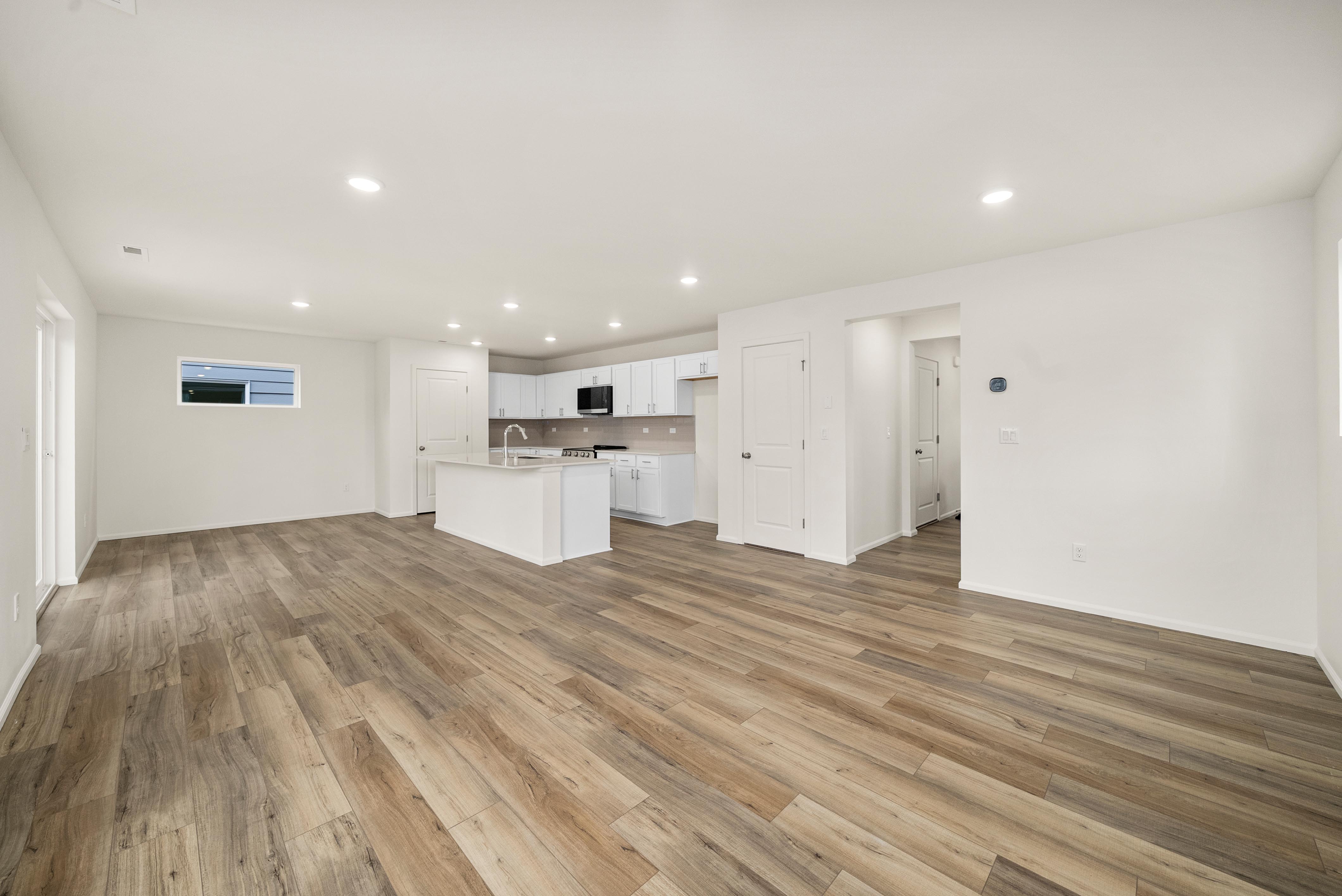Additional included features like two-bay garages, 9’ ceilings on the main floor, luxury vinyl plank flooring, Ecobee® Premium Pro thermostats, and Schlage® electronic front door locks elevate everyday living. Select homesites also offer optional covered patios and open railings for added comfort and style.